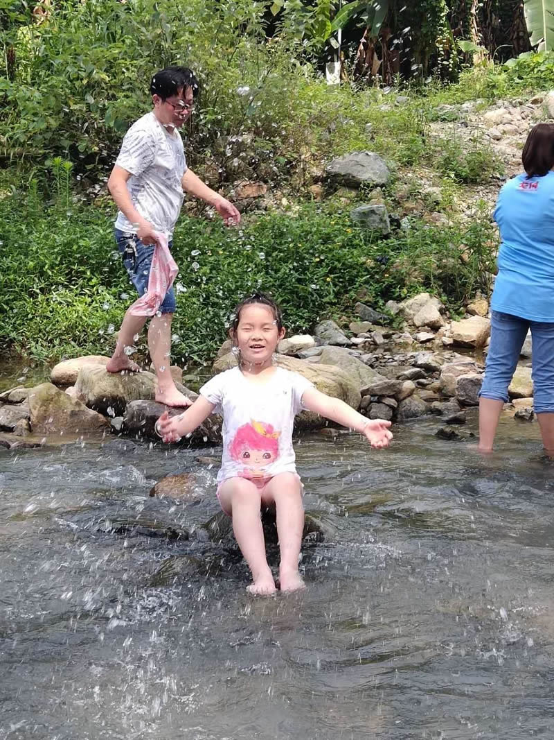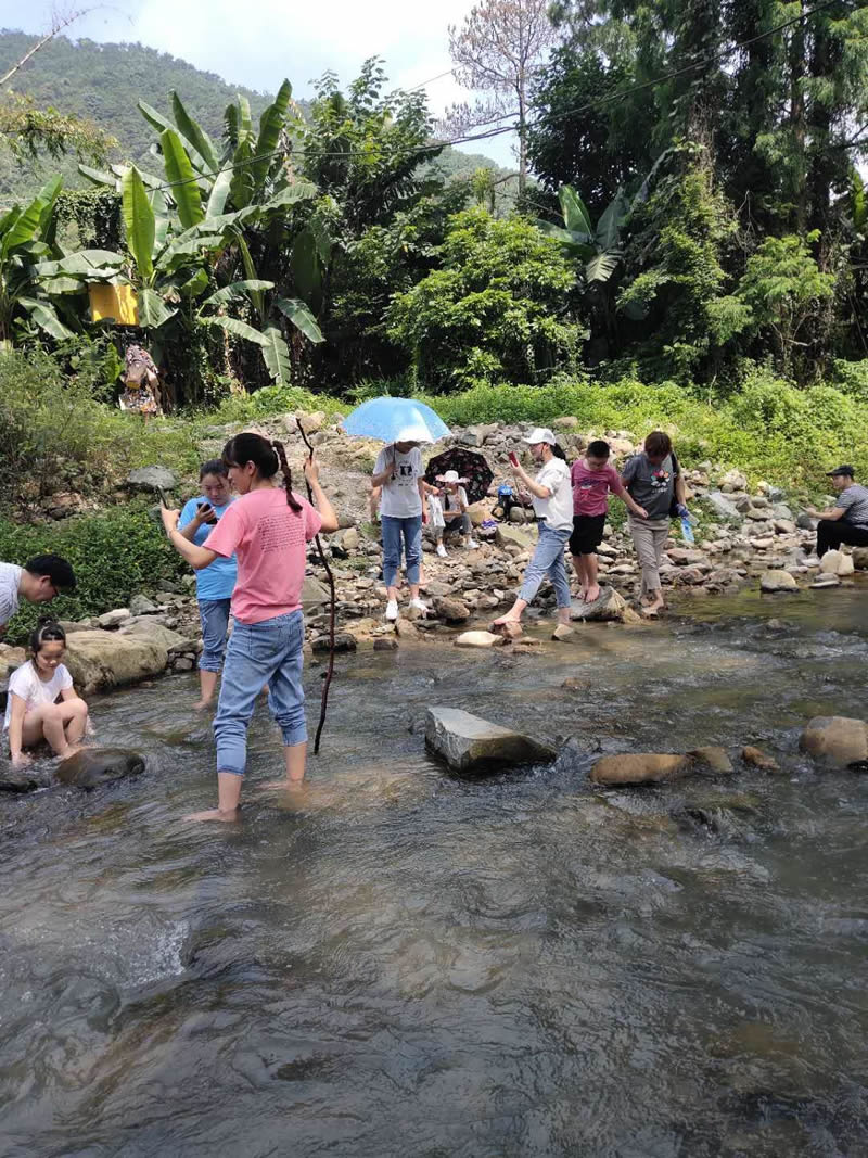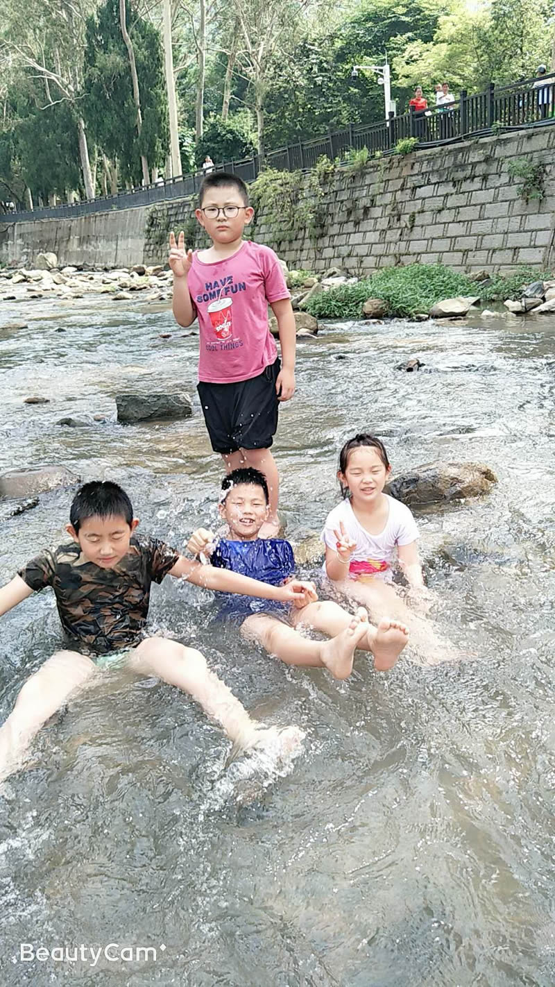 小孩們?cè)诖笕藗兊膸ьI(lǐng)下,在潺潺的溪水中歡樂(lè)的玩耍,夏季炎熱的天氣,唯有戶外的清涼能夠帶來(lái)一絲絲的暢快。